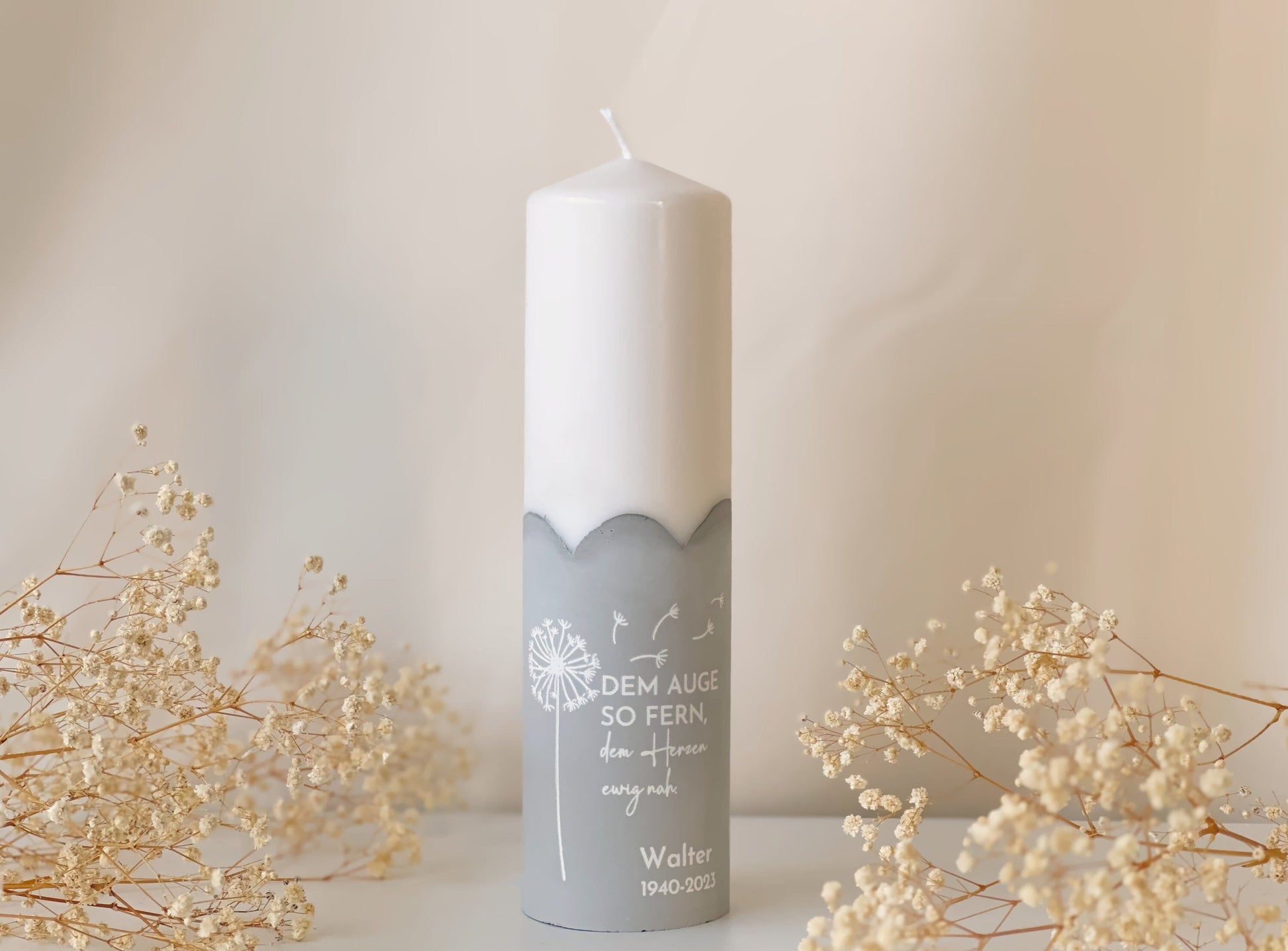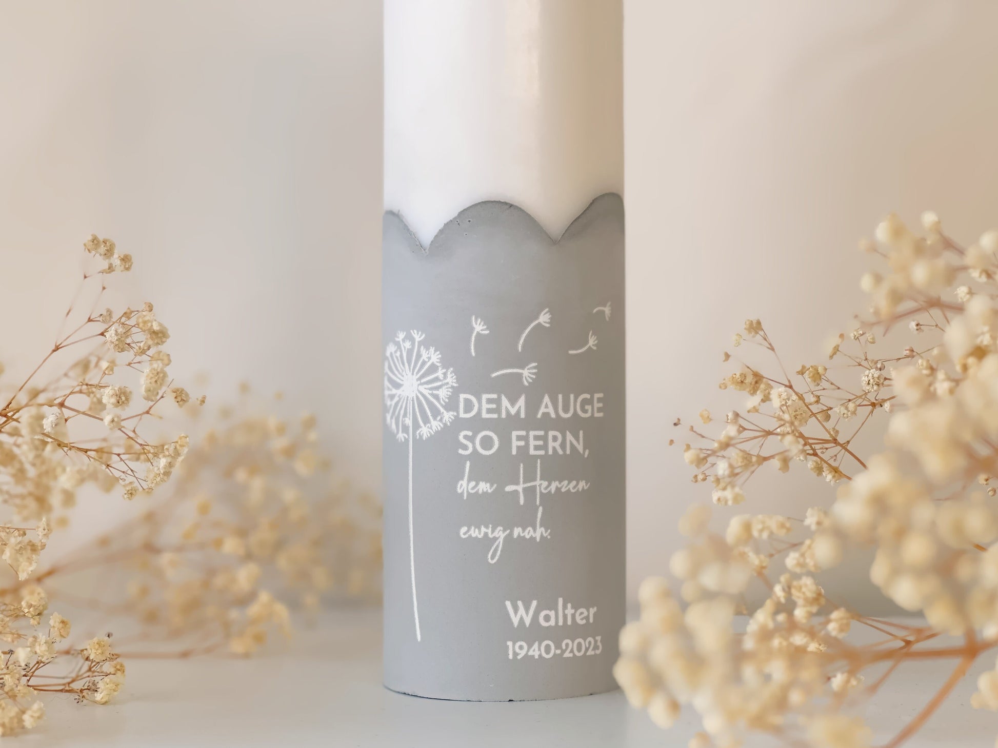In Zeiten des Verlusts und der Trauer kann eine Kerze ein Symbol des Trostes und der Hoffnung sein. Unsere Trauerkerze haben wir dafür entworfen, dir während dieser schwierigen Zeit Licht und Wärme zu schenken. Mit ihrem warmen Licht und einer schlichten Gravur ist diese Kerze eine würdevolle Art, um dem geliebten Menschen zu gedenken und ihm deine Liebe und Anerkennung zu zeigen.
