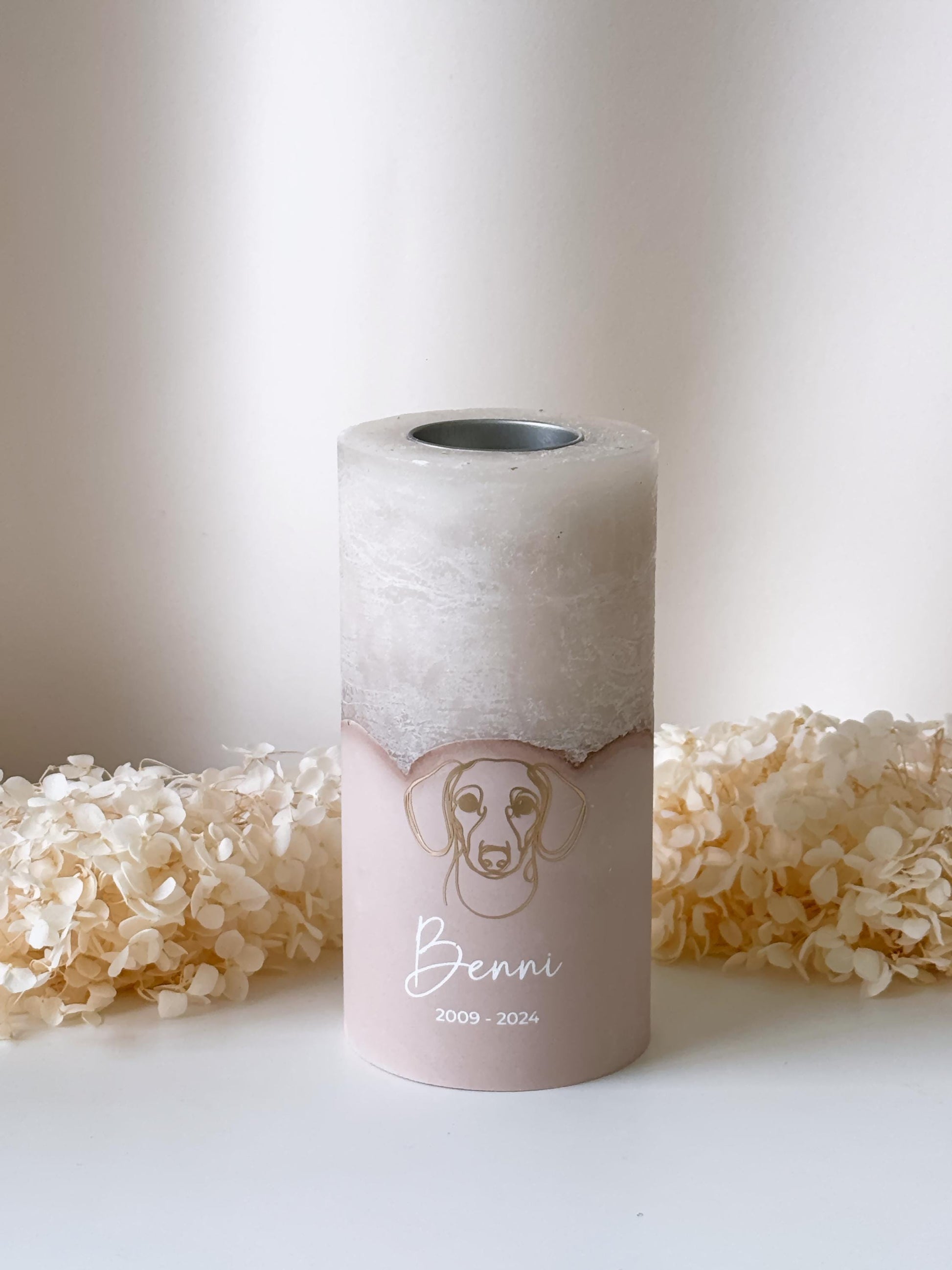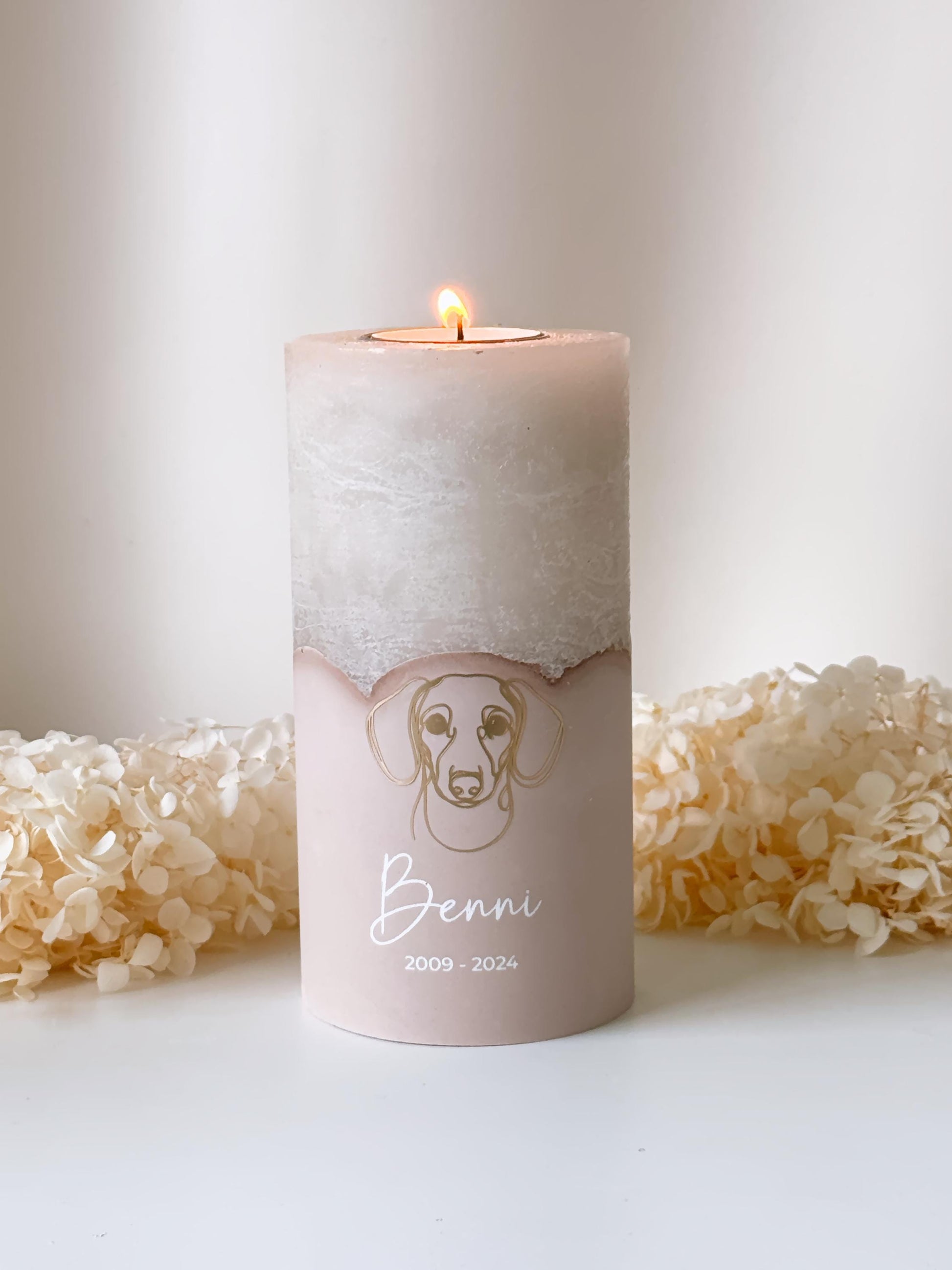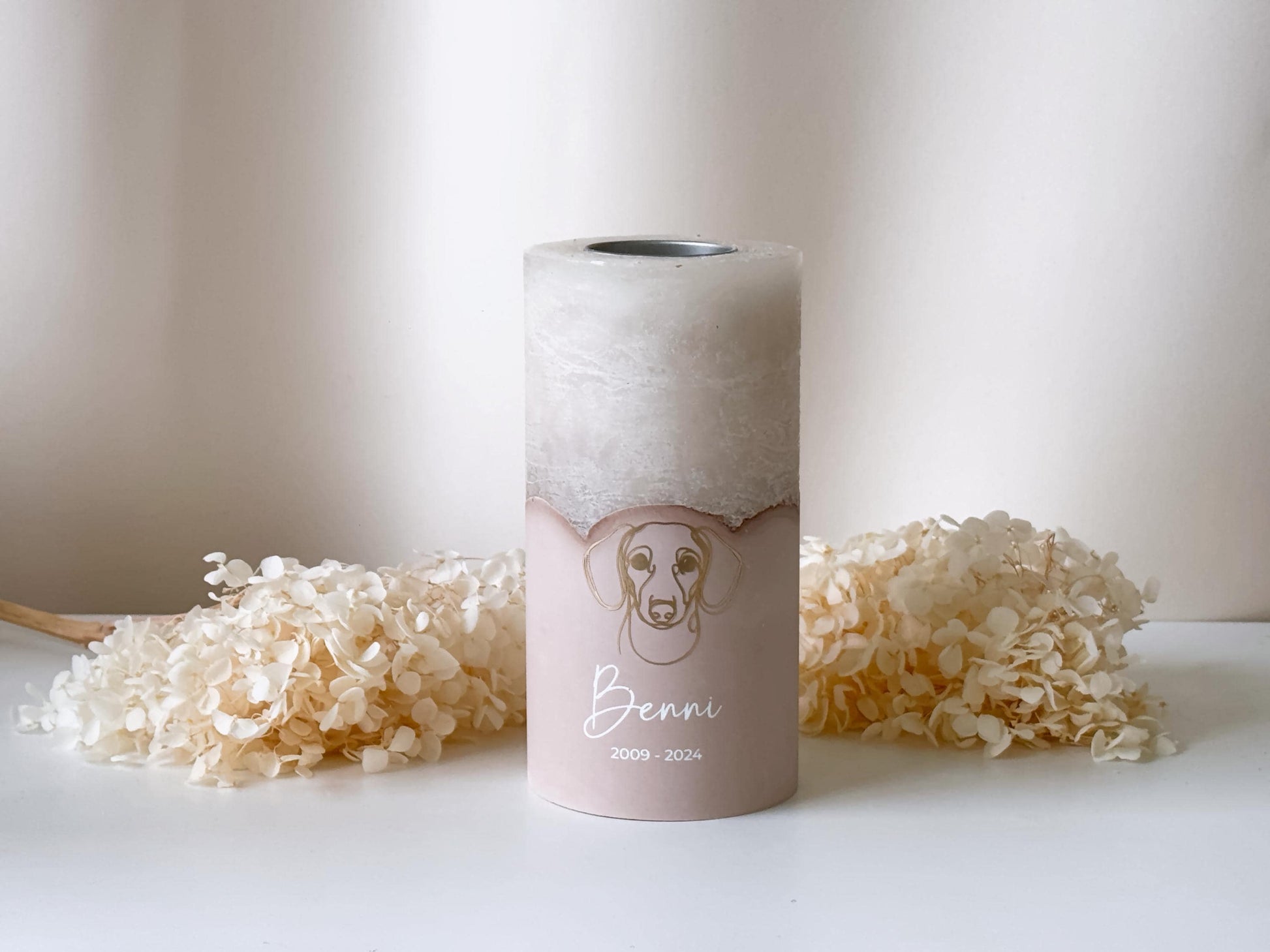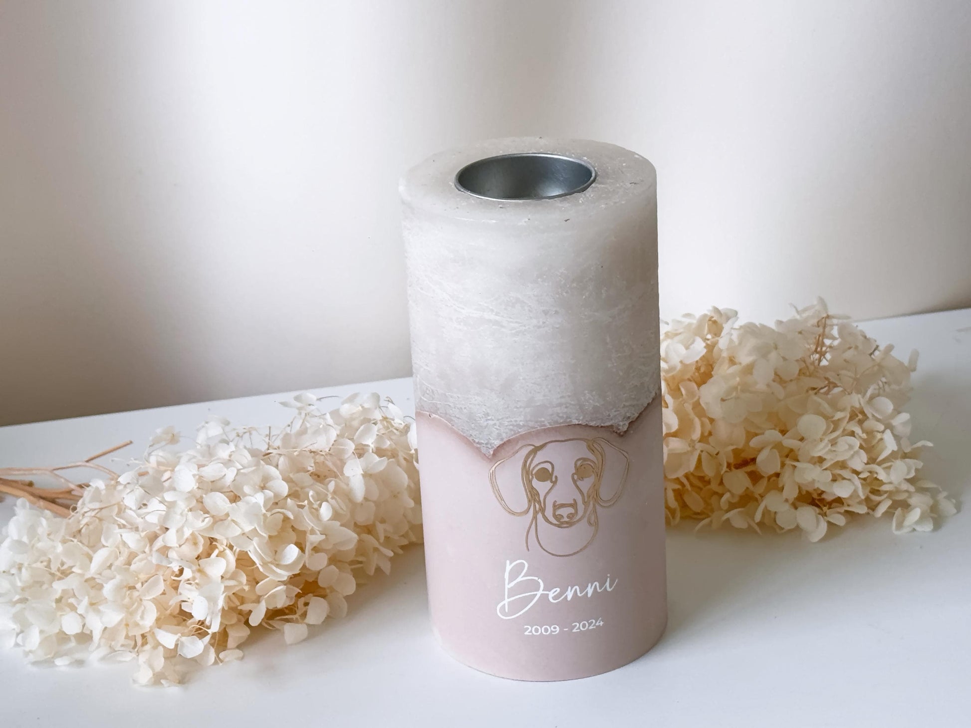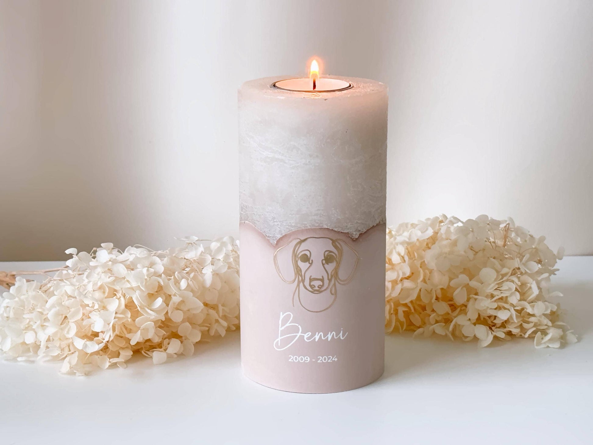 Du suchst eine besondere Erinnerung an deinen treuen Begleiter? Diese personalisierbare Gedenkkerze hilft dir, deinen Hund auf eine liebevolle und stilvolle Weise in Erinnerung zu halten. Mit der individuellen Gravur und dem warmen Licht schaffst du einen Ort des Gedenkens.