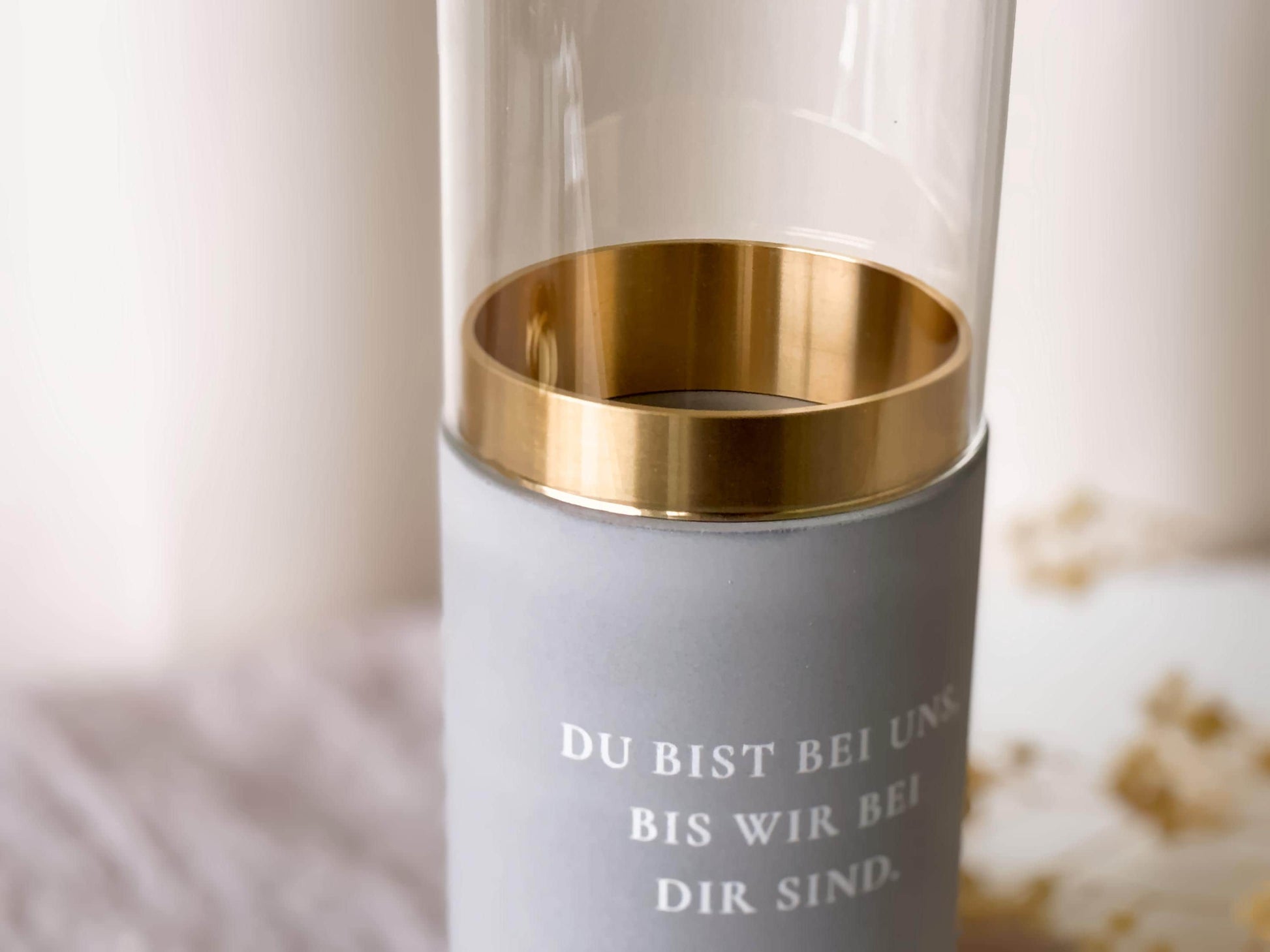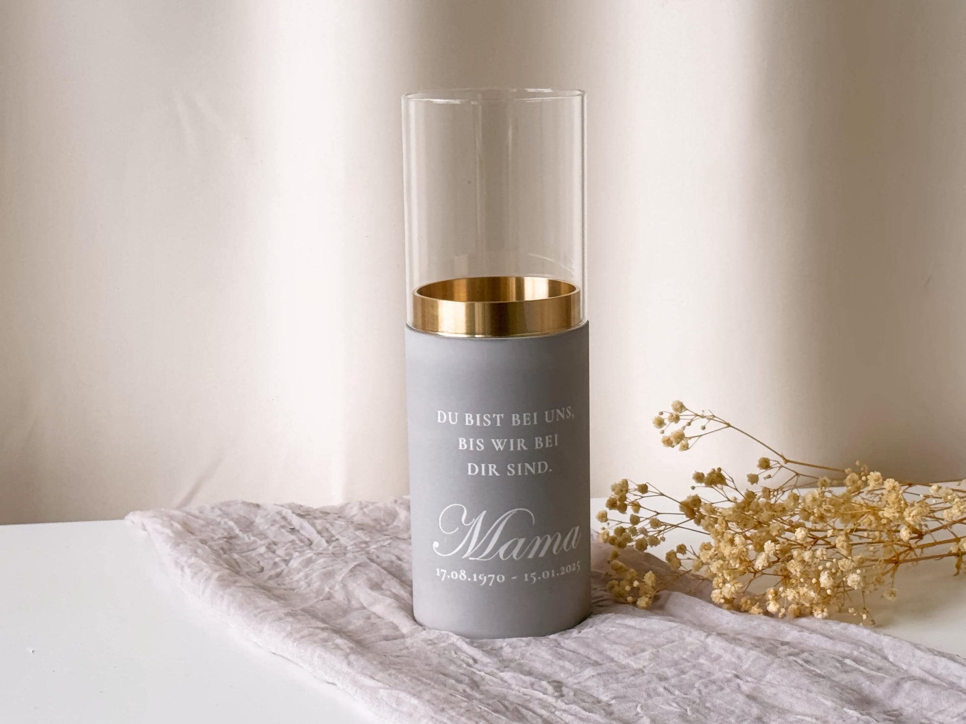 Funeral lantern with golden ring for pillar candles | Name, date & dedication
